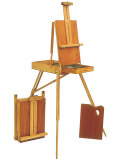 イーゼルボックスは、写生に出かける時の野外イーゼルとスケッチボックスを一体にした便利な脚付きスケッチボックスです。 ボックスの重量がイーゼル全体にかかり、ドッシリとして少々の風でも倒れないのが特徴です。