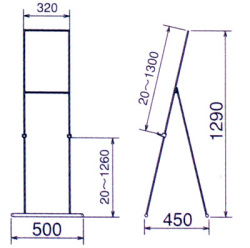 可動式パネル受け付の安定感のあるPOPスタンド 折りたたみ式 ●軽量ボード、POPパネル用 (重量品不可)