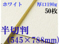 ホワイト色のワトソン。絵具やチャコール、パステルののりが良く特に水彩絵具の発色が良い紙です。 サイズ: 半切判(545×788mm) 厚さ190g