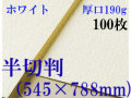 ホワイト色のワトソン。絵具やチャコール、パステルののりが良く特に水彩絵具の発色が良い紙です。 サイズ: 半切判(545×788mm) 厚さ190g