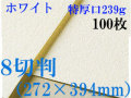 ホワイト色のワトソン。 絵具やチャコール、パステルののりが良く特に水彩絵具の発色が良い紙です。 サイズ: 8切判(272×394mm)厚さ239g